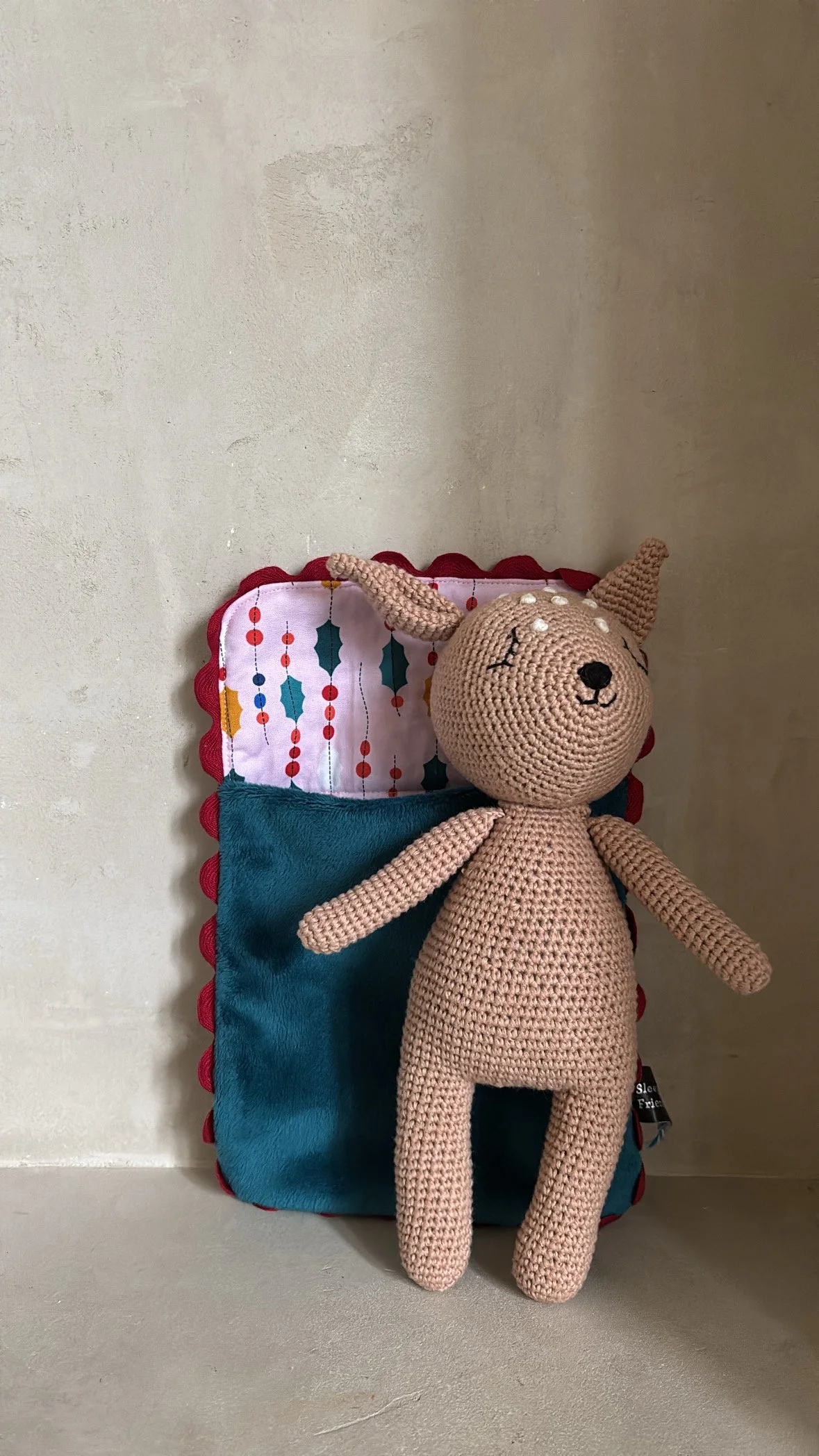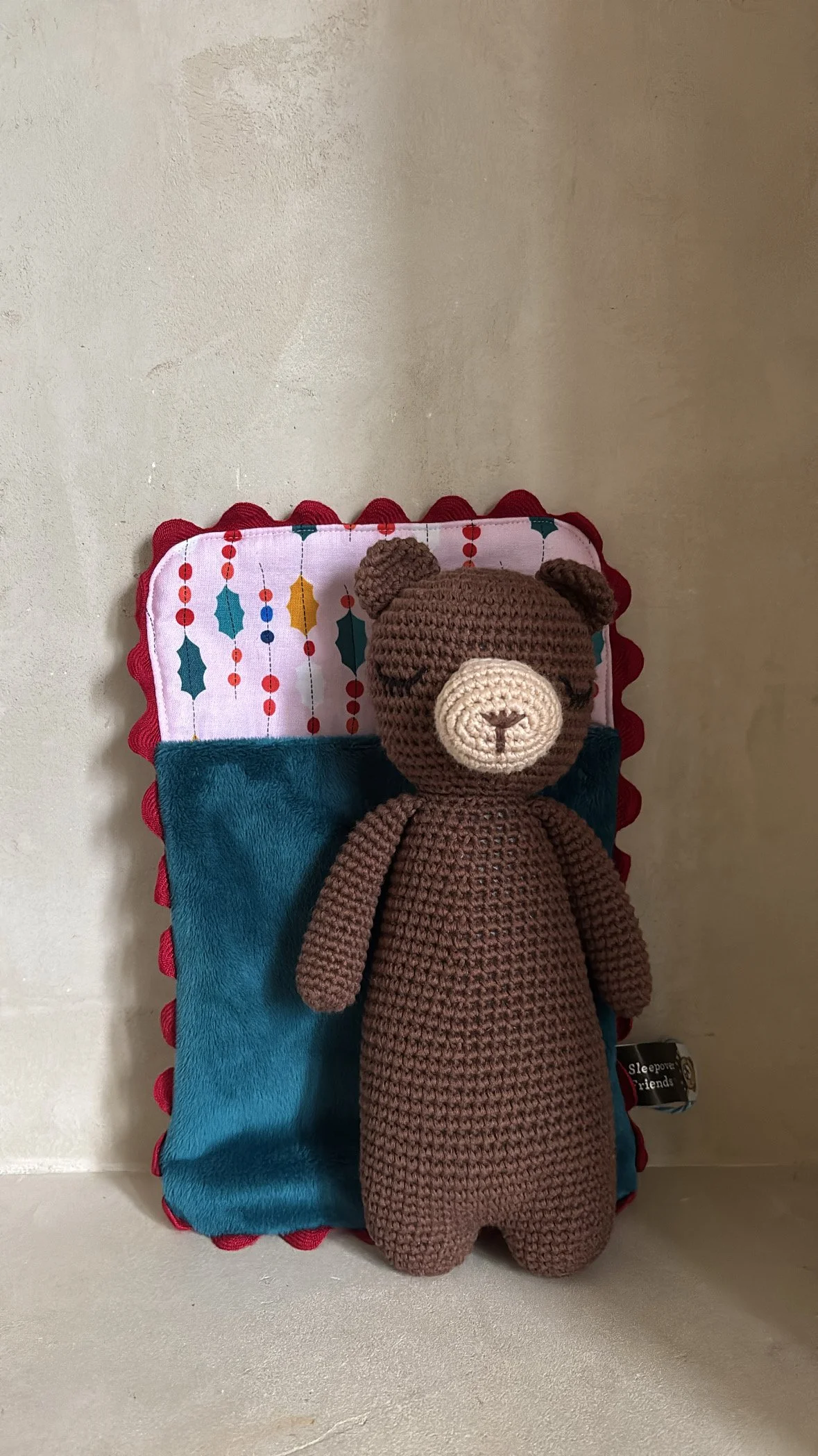 Sleepover Friends are handmade with %100 cotton yarn and polyester cotton fill; measures 9 inches by 4 inches. All friends are third party tested and have Children's Product Certificate (CPC) to ensure they are safe for newborns and children; imported, designed by Sleepover Friends.